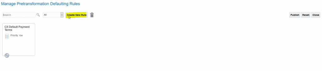 - Go to Others -> Setup and Maintenance -> Order Management -> Enter task “Manage Posttransformation Defaulting Rules”.