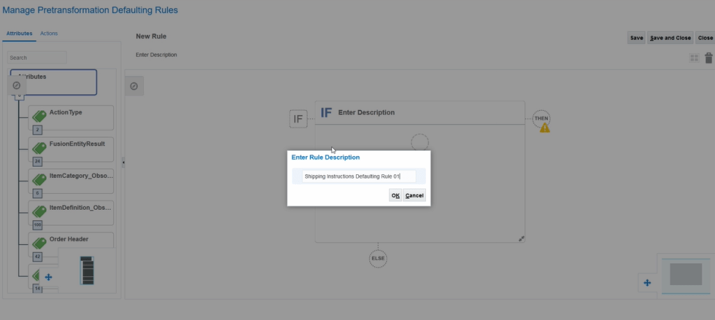 - Enter Rule Description text = “Shipping Instruction Defaulting Rule 01” and click OK
