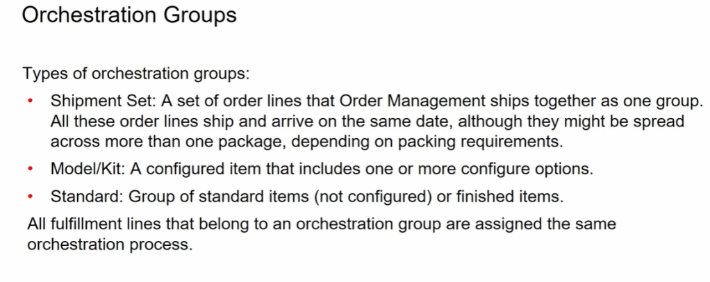 An orchestration group is a collection of fulfillment lines that Order Management, processes