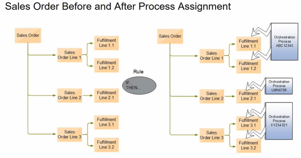 together. Each orchestration group is a subset of a sales order. An assignment rule processes