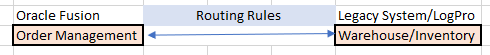 Example: We could be using Oracle fusion for Order management and Legacy system of Warehouse. We need to setup communication using External Interface Layer(Routing Rules) .