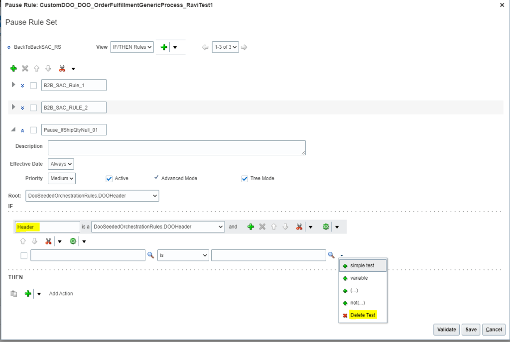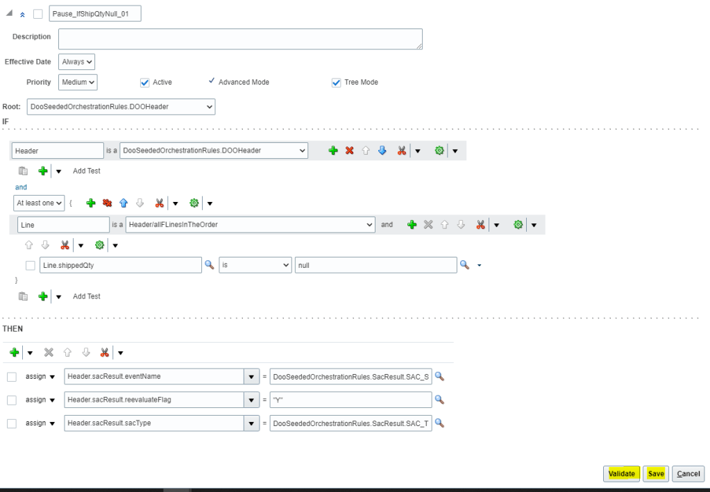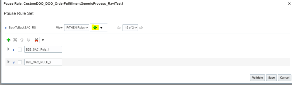 - In the Pause Rule: CustomDOO_OUStandardOrdersProcessXX window, click Validate