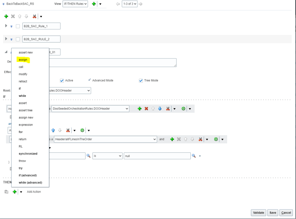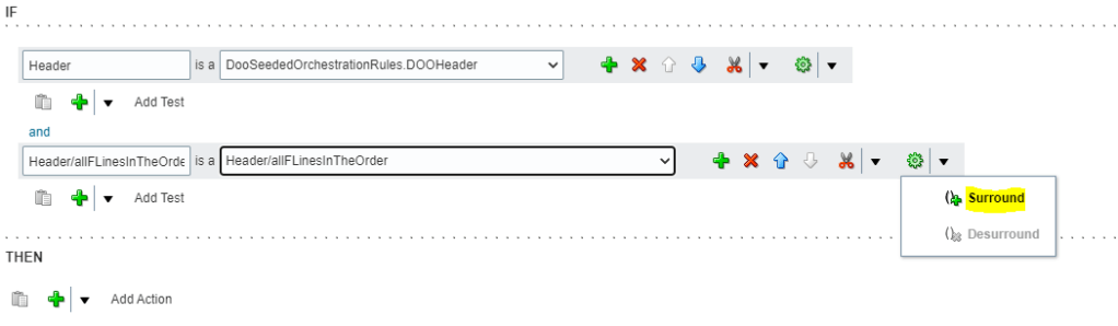 - Underneath the IF label, in the left field that contains DooSeededOrchestrationRules.DOOHeader, substitute the current text with Header.