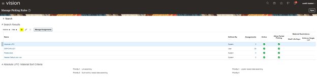 Picking Rule enables you to define the criteria that determines how material is consumed. For example, LIFO, FIFO, Lot Ascending, Locator Ascending. After you create a picking rule, it can be enabled for usage in various organizations. Below is the Industry standard few of the movement rules. Of which Picking rule is movement between FGS and Staging Area.