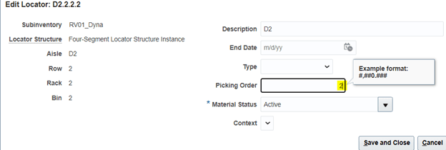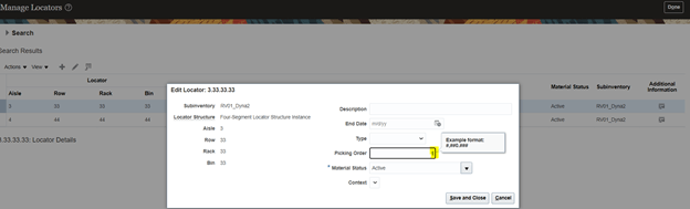 - 3.33.33.33 has Highest Precedence over 4.44.44.44 within Subinventory RV01_Dyna2 due to Picking Order.