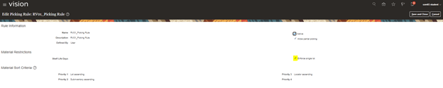 - The enforcement of a single lot for the specific picking rule. If not, multiple lots may be picked.