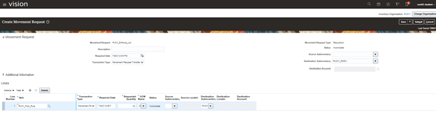 - By default, Movement Request will get populated. Erase it and provide user defined name.