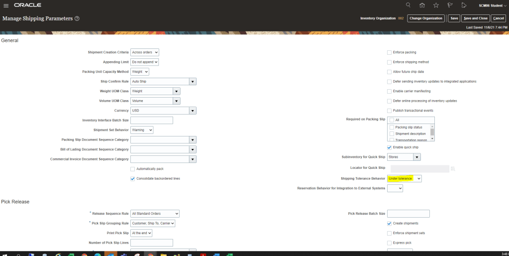 - Verify that Shipping Tolerance Behavior is set to “Under Tolerance“.