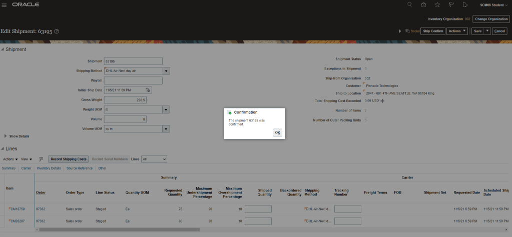 - Click on Ship Confirm.