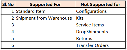 Shipment Tolerance is Supported/Not Supported for following