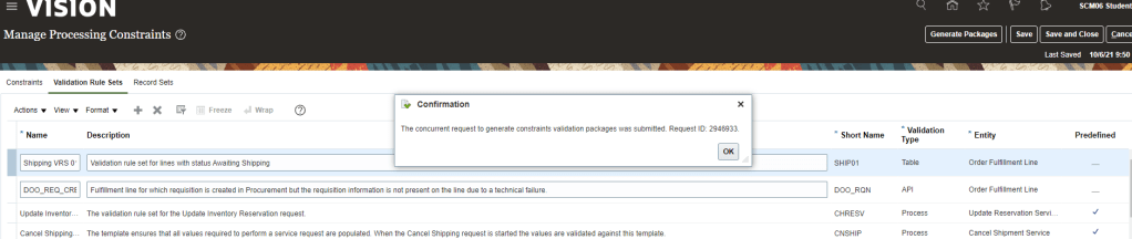 - Assignment Level = Organization , Organization = 001, Sourcing Type = Sourcing Rule , Sourcing Rule = Local_Sourcing_Rule_Ravi