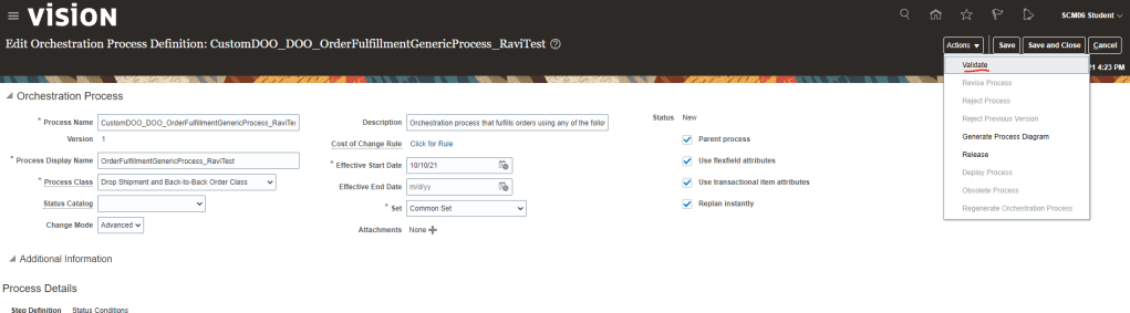 - Assignment Level = Item, Item = “AS46334”, Sourcing Type = Sourcing Rule , Sourcing Rule = “Global_Sourcing_Rule_Ravi”