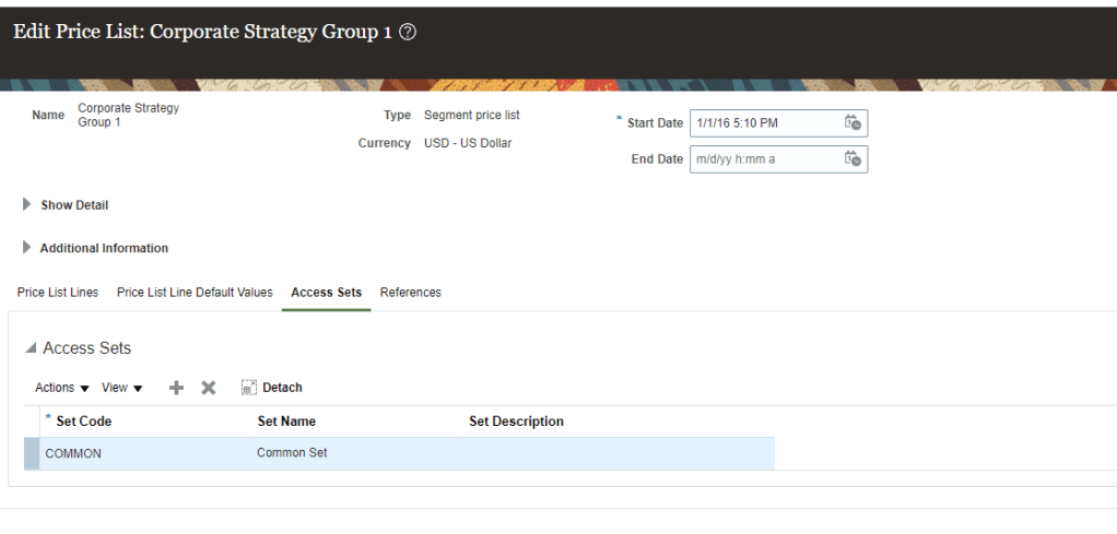 - Once all Setup completed under Additional Information click on Access Sets and enter Common
