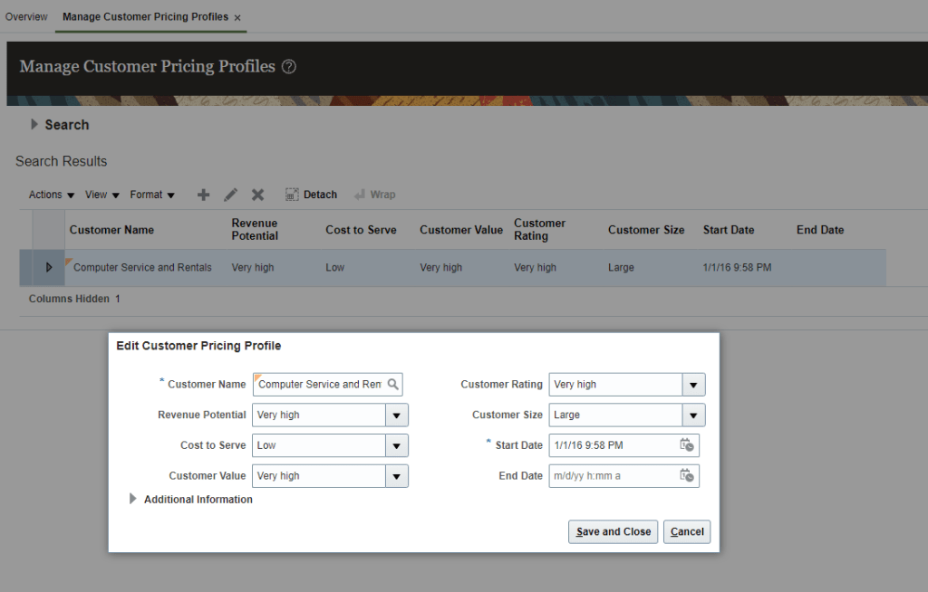 1. Pricing Profile. Categorize customers with similar characteristics. Example: Categorize a customer as large customer size, high customer value, medium customer rating, and high revenue potential.