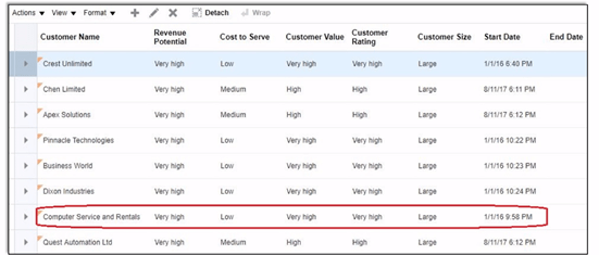- Against each customer name, determine Revenue Potential, Cost to Server, Customer Value, Customer Rating and Customer Size.