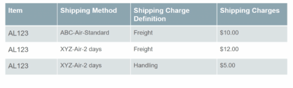 - For same item “AS46336” we have two separate shipping charges based on type of shipment.